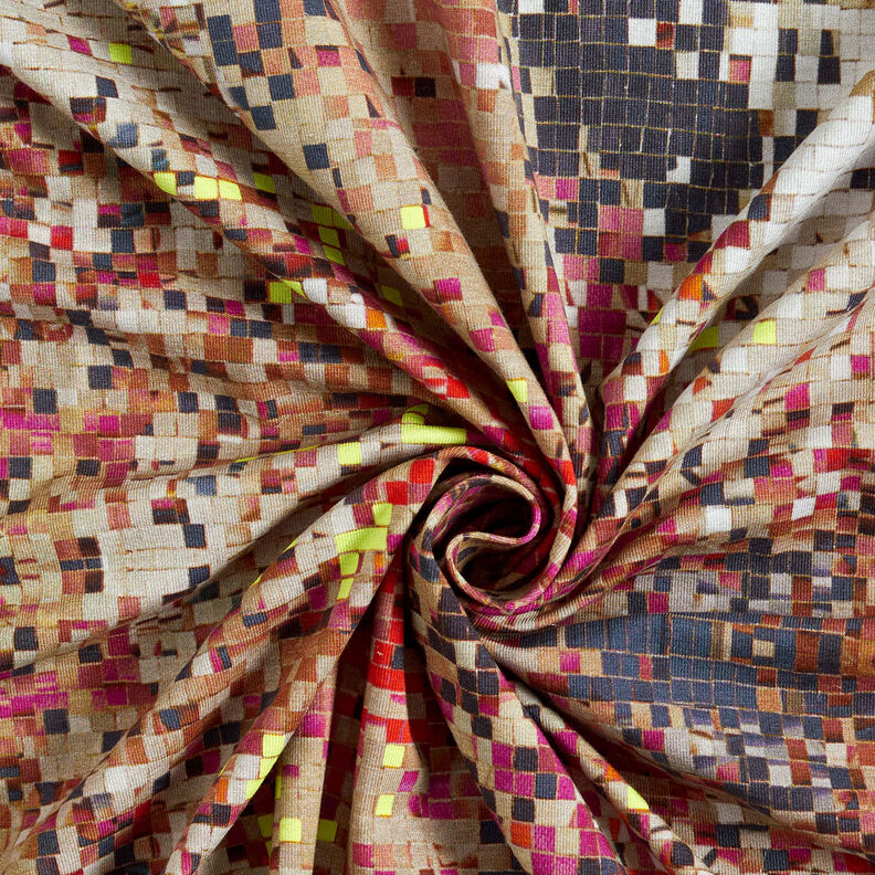 GOTS Bomuldsjersey spredt mosaik | TCC x LOOKS by Wolfgang Joop – rød/mørkebeige