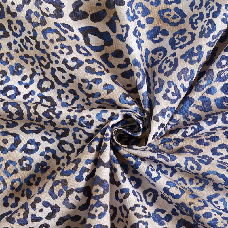 GOTS Bomuldspoplin leomønster | TCC x LOOKS by Wolfgang Joop – indigo/lys taupe