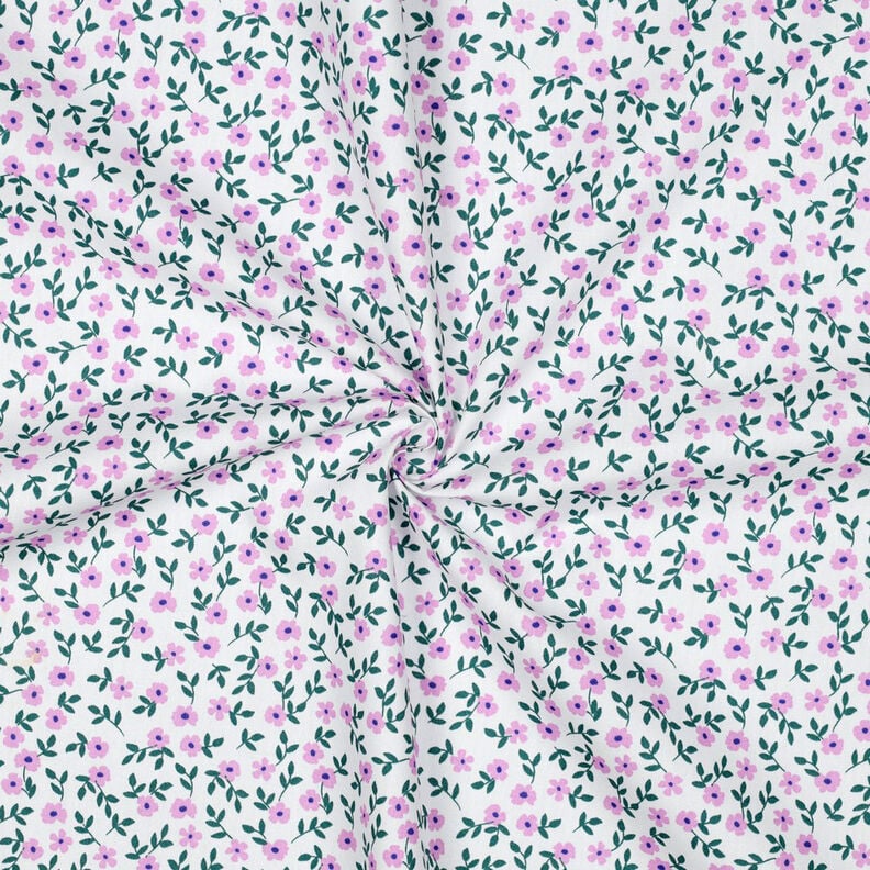 GOTS Bomuldspoplin strøblomster | Poppy Fabrics – hvid/rosa