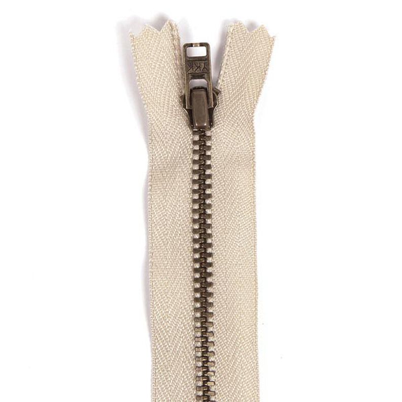 Ikke-delbar lynlås med metaltænder (antik, 3 mm). Velegnet til bukser, nederdele og kjoler såvel som til jakkelommer. Kvalitet fra YKK.