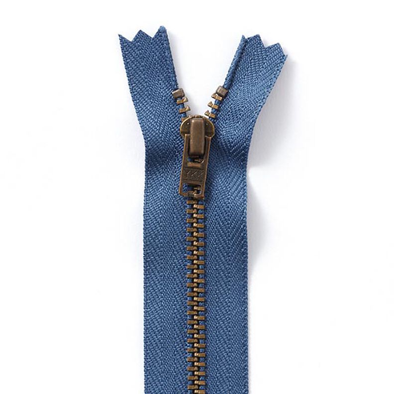 Ikke-delbar lynlås med metaltænder (antik, 3 mm). Velegnet til bukser, nederdele og kjoler såvel som til jakkelommer. Kvalitet fra YKK.