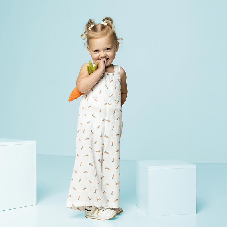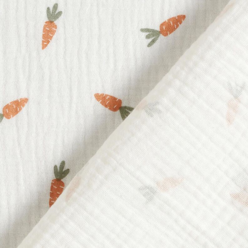 Musselin/Dobbelt-Crincle stof små gulerødder – uldhvid