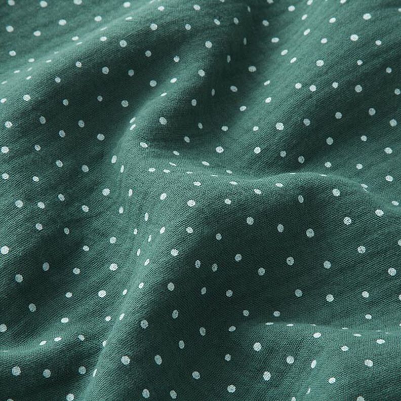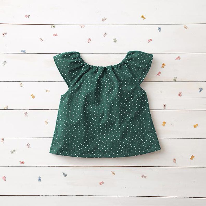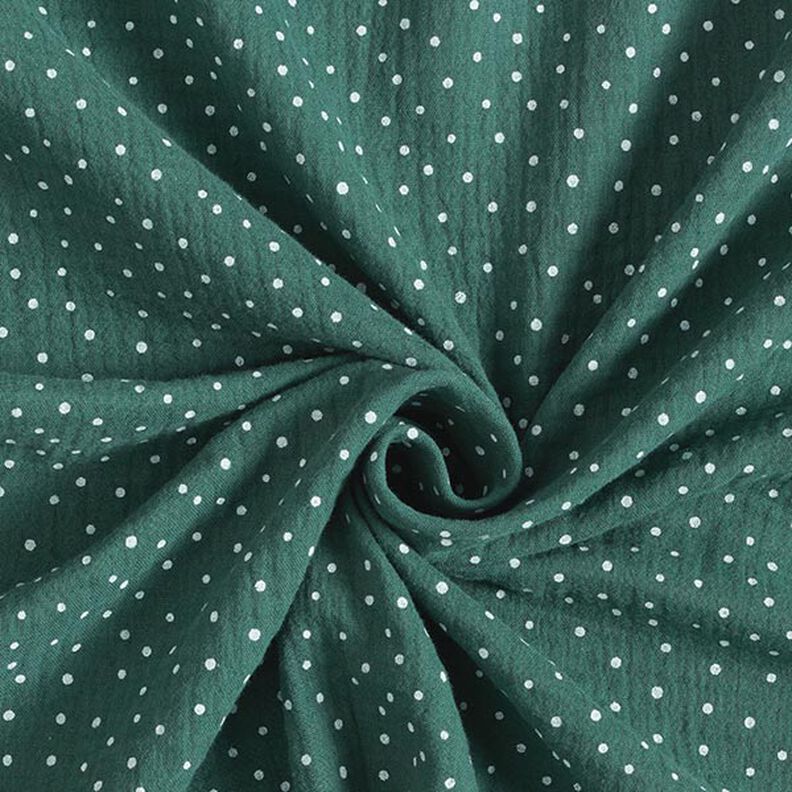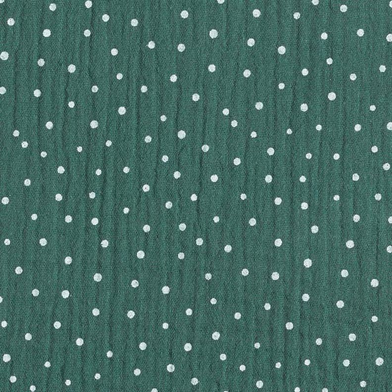 Musselin/Dobbelt-Crincle stof små prikker – mørkegrøn/hvid