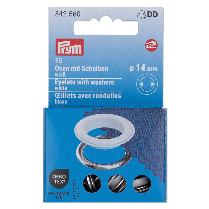 Øjer med skiver [15 stk. | Ø 14 mm] | Prym – hvid/sølv metallic