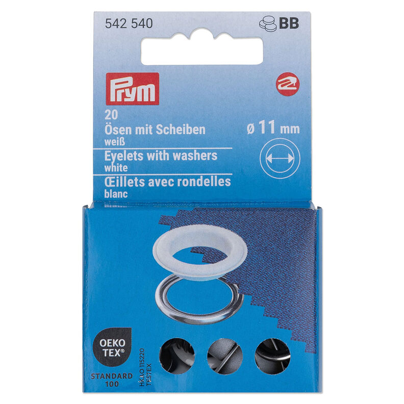 Øjer med skiver [20 stk. | Ø 11 mm] | Prym – hvid/sølv metallic