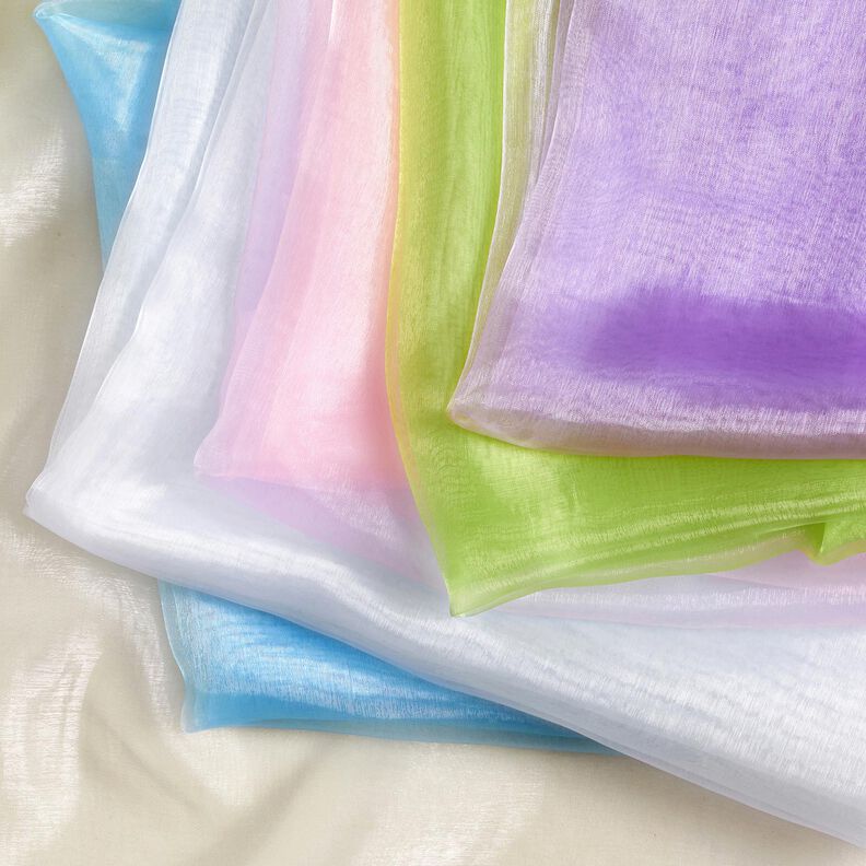 Dette papirtynde Organza-stof egner sig særligt godt til festtøj eller elegante dekorationsideer. Det transparente stof føles derfor luftigt og let på huden og har et særdeles flot fald.