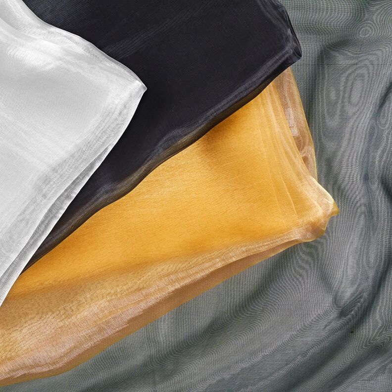 Dette papirtynde Organza-stof egner sig særligt godt til festtøj eller elegante dekorationsideer. Det transparente stof føles derfor luftigt og let på huden og har et særdeles flot fald.