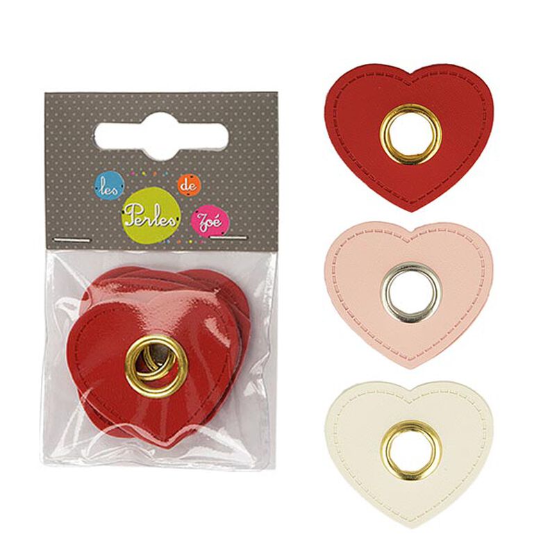 Øskenpatch Læderimitat hjerte [ 4 Styk ] – karminrød