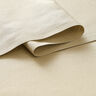 - Vigtigt: Dette stof må kun klippes og forarbejdes på tværs i forhold til vævekanten, det betyder at bredden er et fast mål. Hvis stoffes klippes parallelt med vævekanten, forskyder fibrene sig! Vævekanterne er faste, men skærekanterne skal sømmes grundigt.