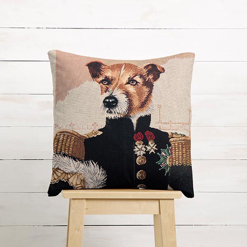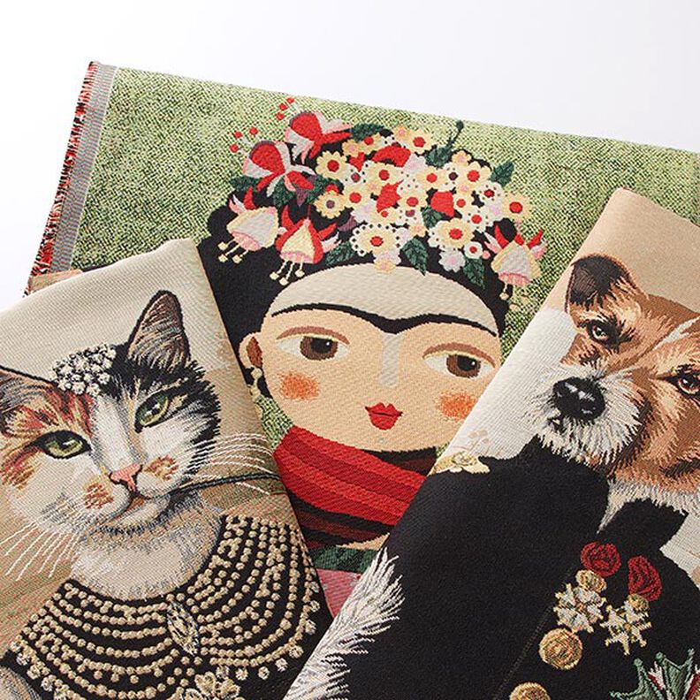 Dette pragtfulde Gobelinstof har et imponerende Jacquardmønster. På grund af den særlige vævning er stoffet særligt robust og holder formen, samtidig med at det falder lidt stift.