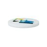 Smuk, rund plastknap med øske til farvestrålende og sjove detaljer på dit tøj.