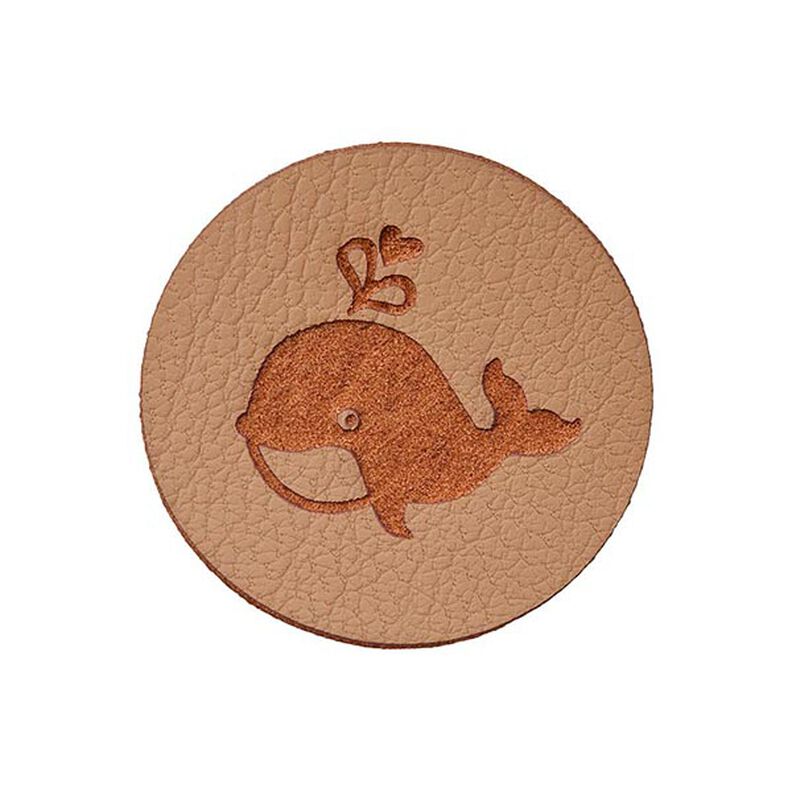 Sød pyntedel med hval-prægning til at sy på. Ideel til børnetøj eller til dit næste syprojekt!