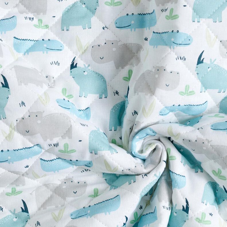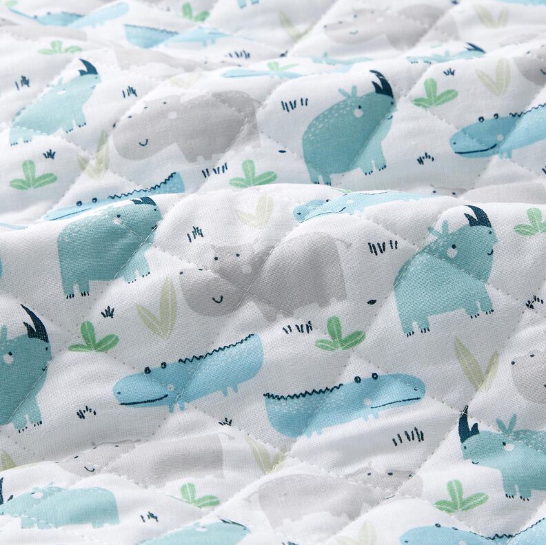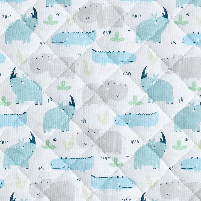 Quiltstof Flodhest og næsehorn – uldhvid