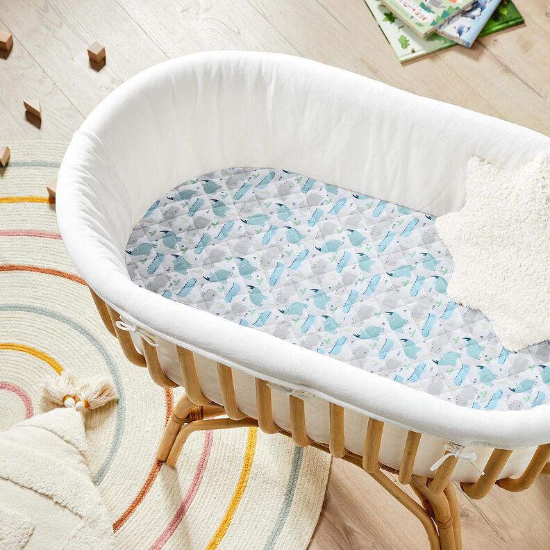 - Dette quiltede stof er meget alsidigt. Fra legetæpper til babykurve, puder, sengetæpper og indretning til børneværelser, fantasien har ingen grænser. Kanterne kan let trimmes med kantbånd.