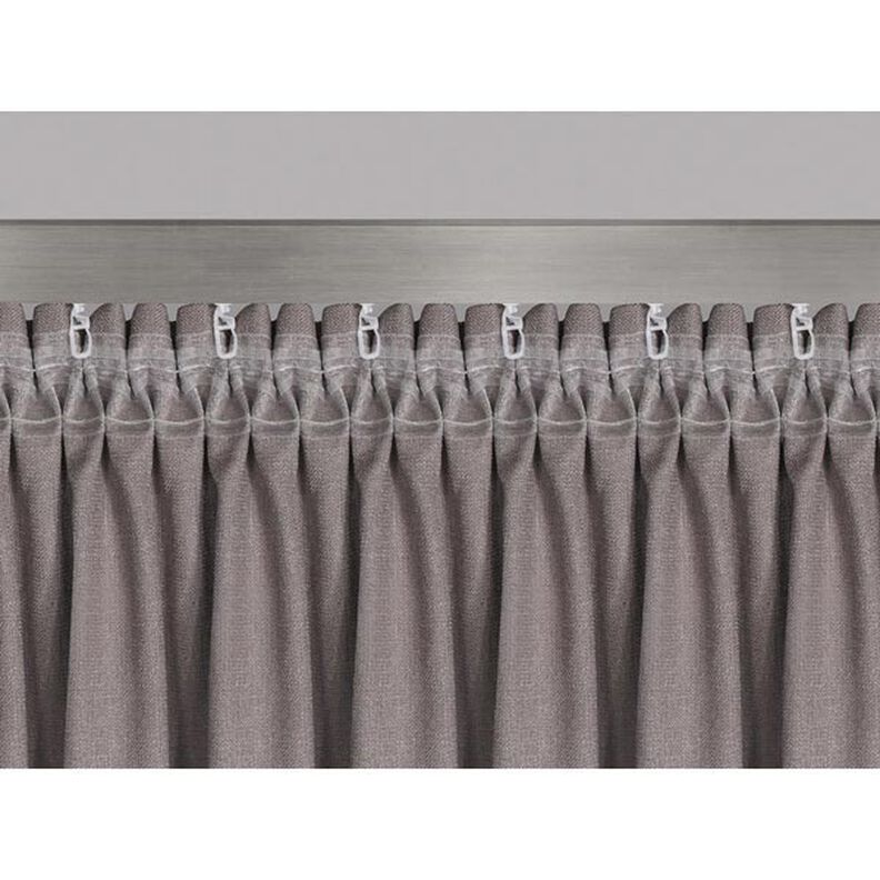 Særligt egnet til stoffer med rapport Fra lette eller transparente stoffer til mellemtunge dekorationsstoffer Egnet til hægter og glidere Tillæg: 250% | 1:2,5 Rapport: ca. 60 mm Lommebredde: ca. 5 mm Lommelængde: ca. 8 mm Samlet bredde: 50 mm