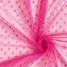 Blød, let fin tyl i sarte farver, der glimter svagt og egner sig ideelt til festlig karnevalsudklædning, luftige nederdele, eller brudeslør. Tyllet kan også anvendes til dekorationsformål.