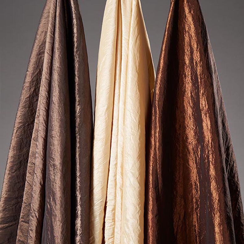 Af det silkeagtigt skinnende Taftstof kan du sy dig en elegant festgarderobe. Denne krøllede variant giver dit tøj et helt særligt look.
