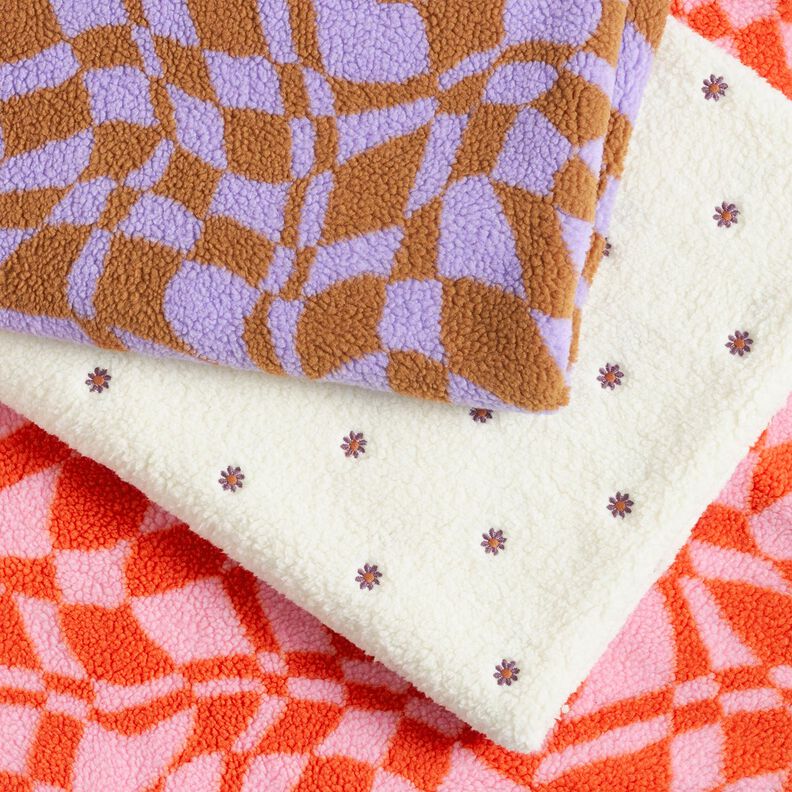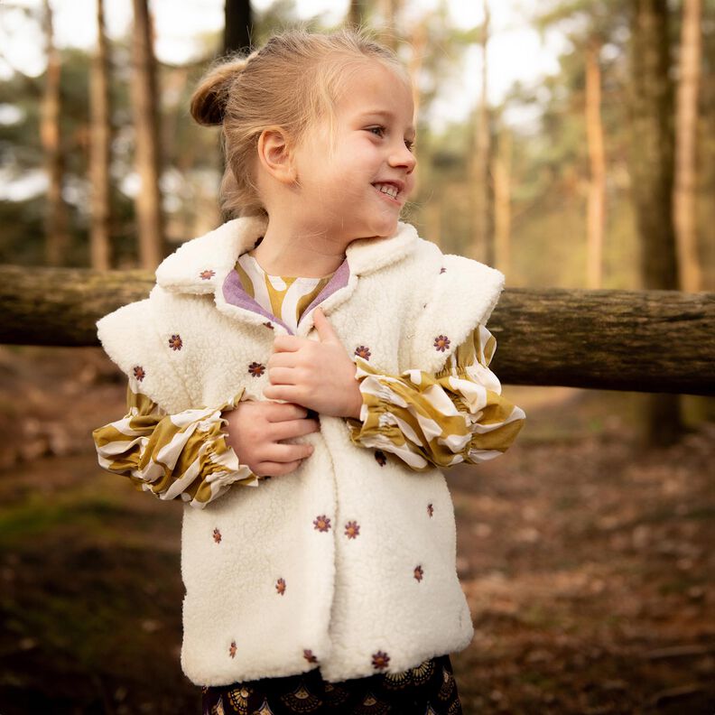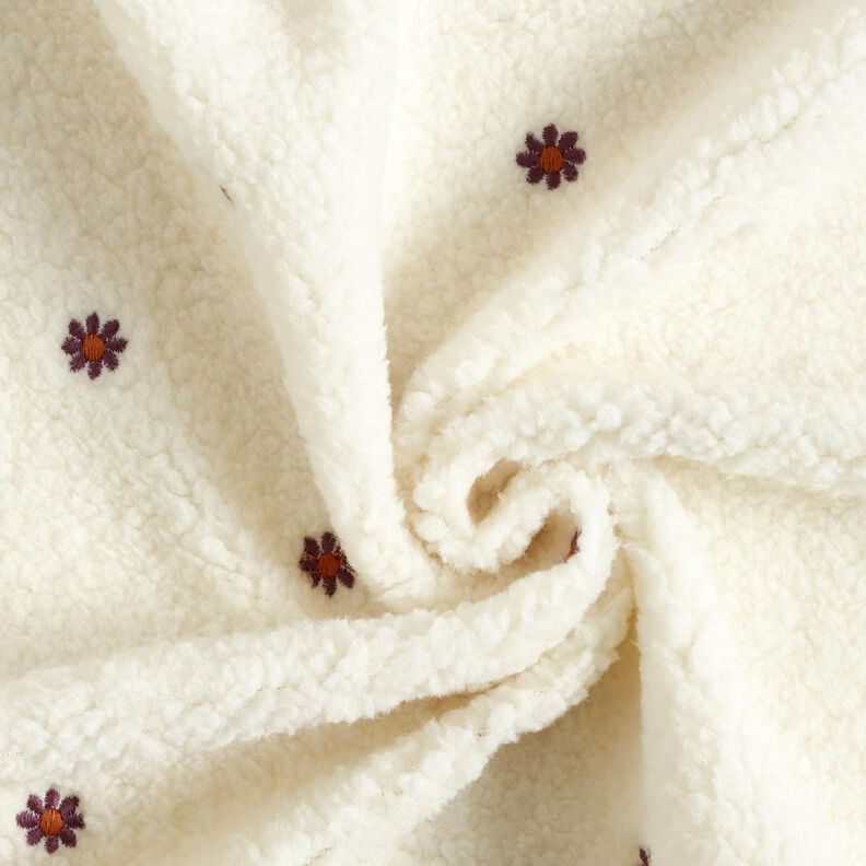 Teddyplys broderede små blomster – uldhvid/aubergine