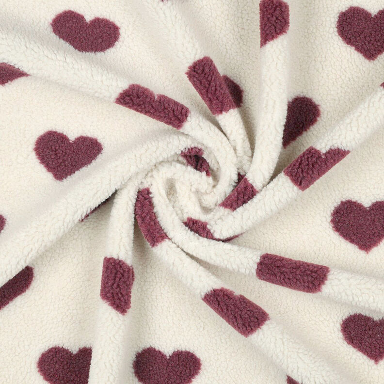 Teddyplys Hjerter | by Poppy – natur/bordeaux