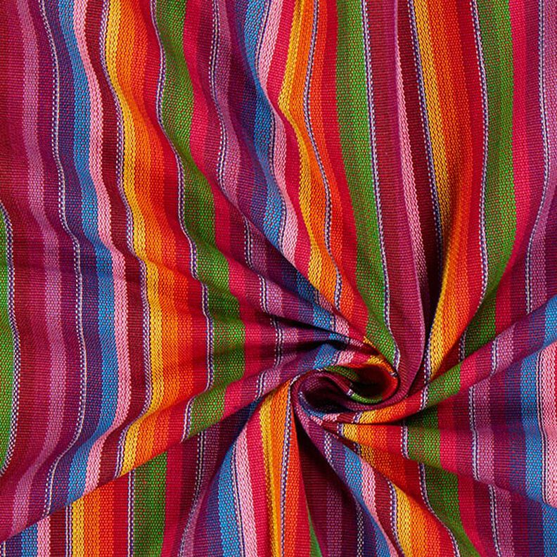 Dette pragtfulde stof repræsenterer Sydamerikas flair. Det specielle stof kan bruges til såvel farverige nederdele som kjoler og ponchoer, men også til boligindretning.