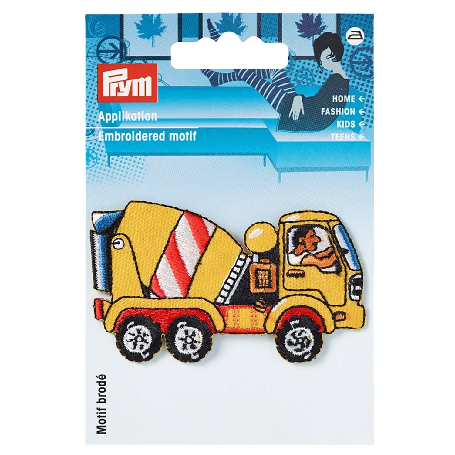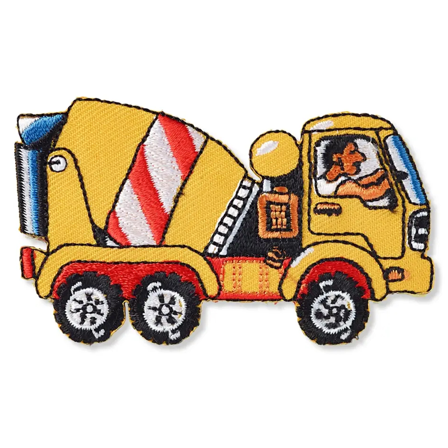 Med Pryms "Concrete mixer"-patch kan du tilføje masser af byggepladsaction til tøj og tilbehør. Den detaljerede gravemaskine i lysende orange og gul fanger straks øjet - sorte konturer og små highlights i grå og hvid understreger det seje maskinlook.