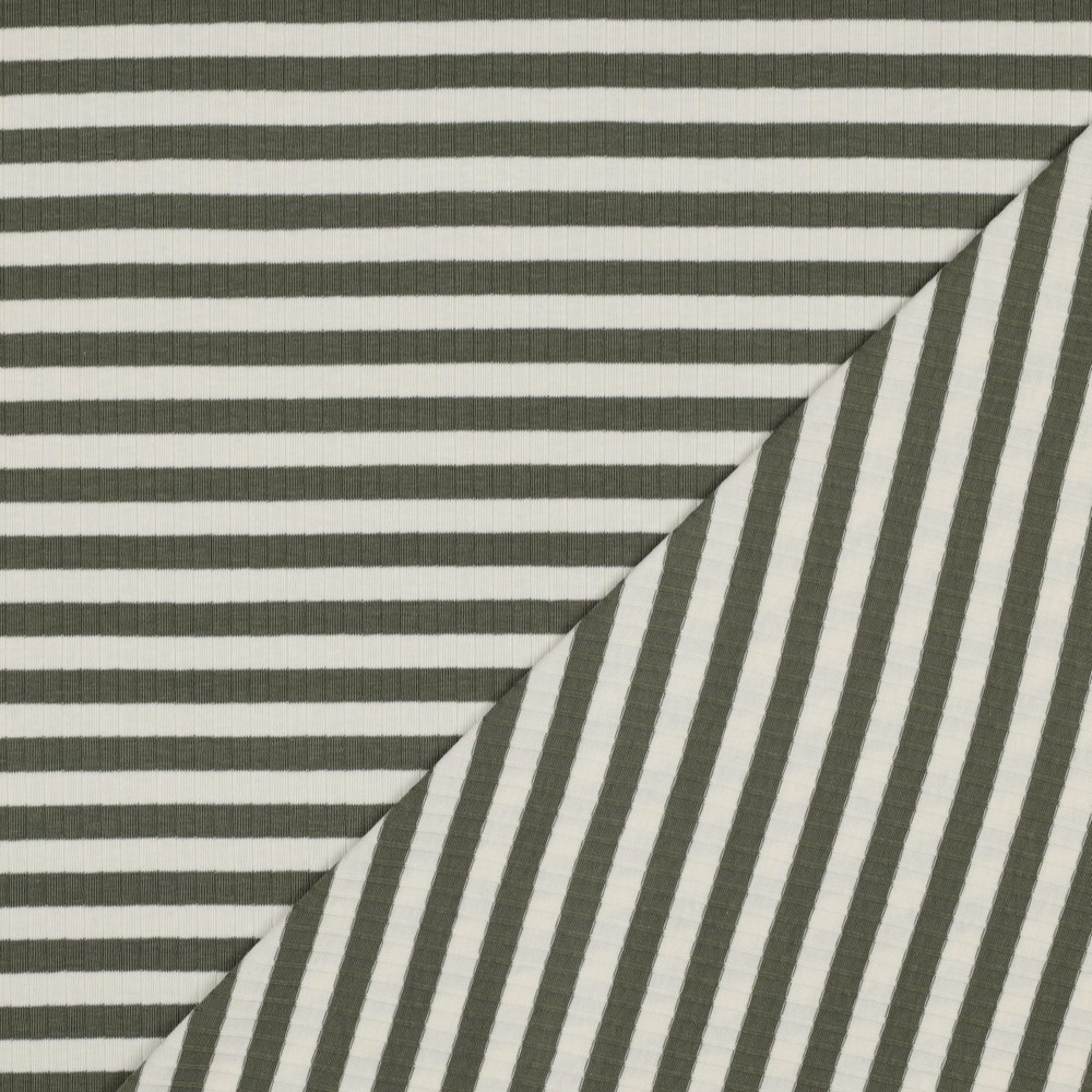 Rib jersey - striber grøn ecru, garnfarvet