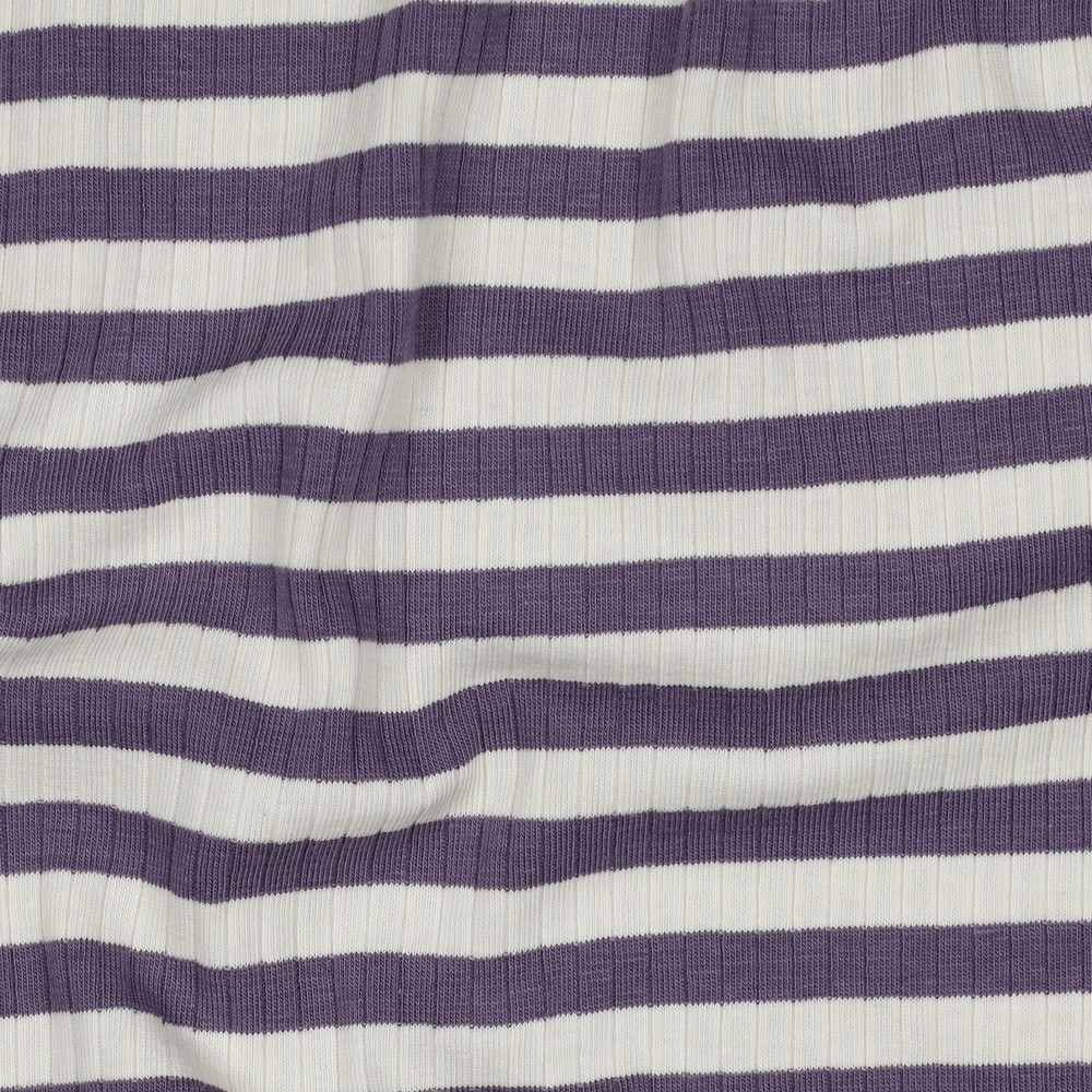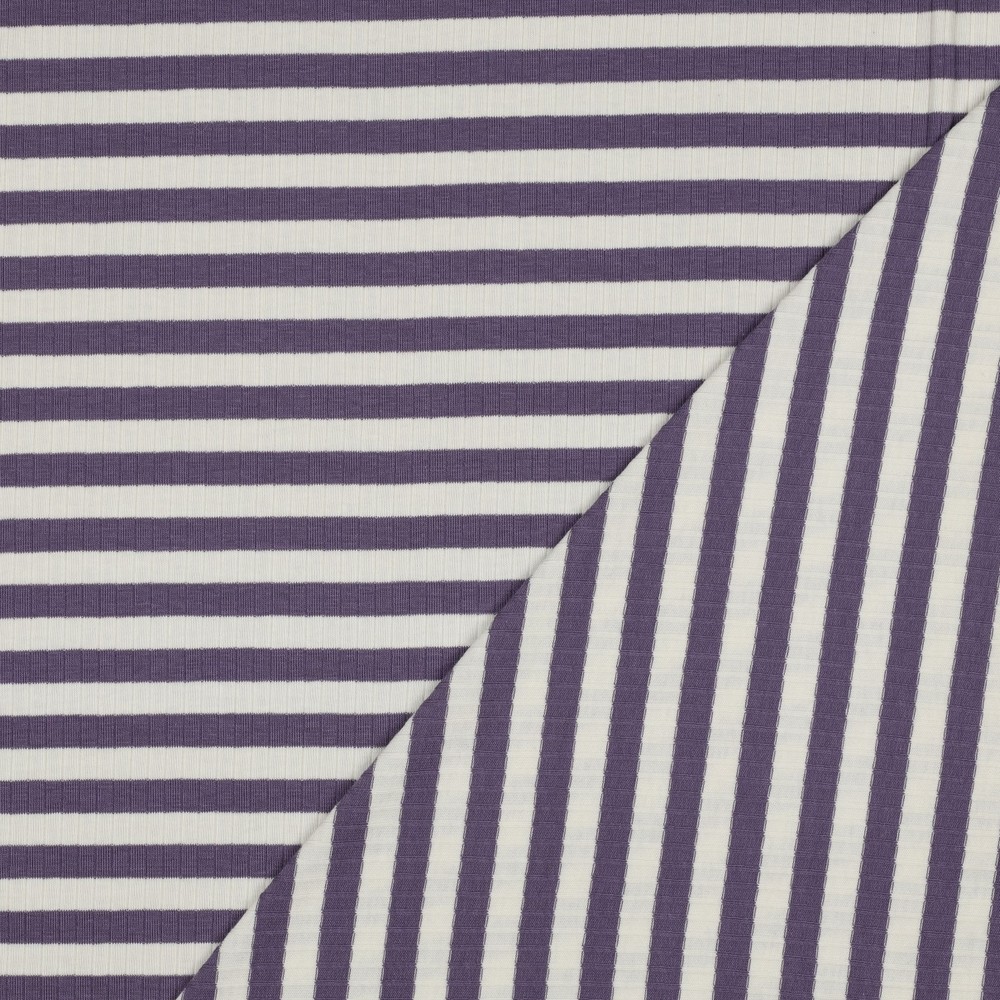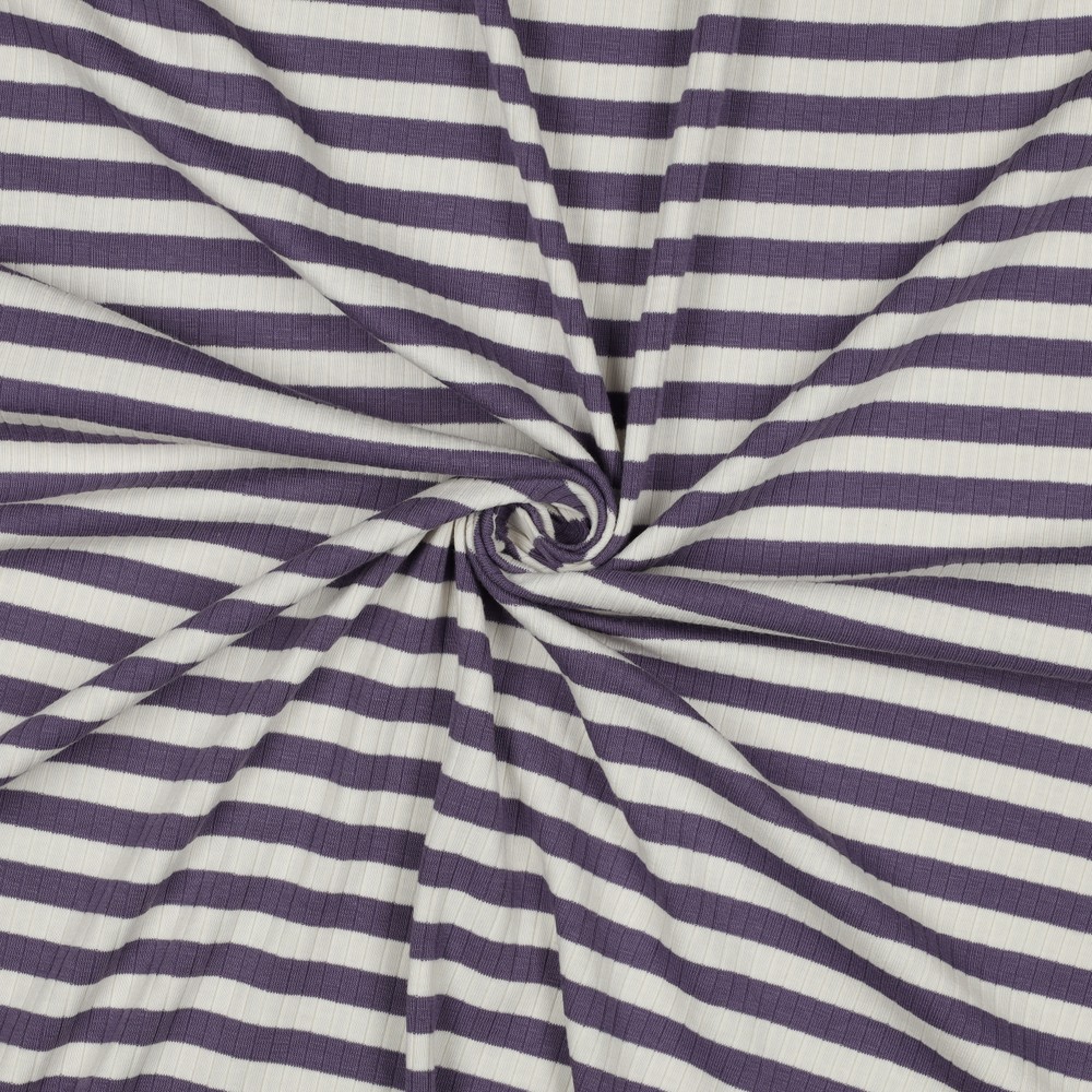 Uanset om det er til sarte pastelfarver, minimalistiske outfits eller hyggelige favoritter - denne ribbede jersey i lilla og ecru er en alsidig allrounder til dine syideer.