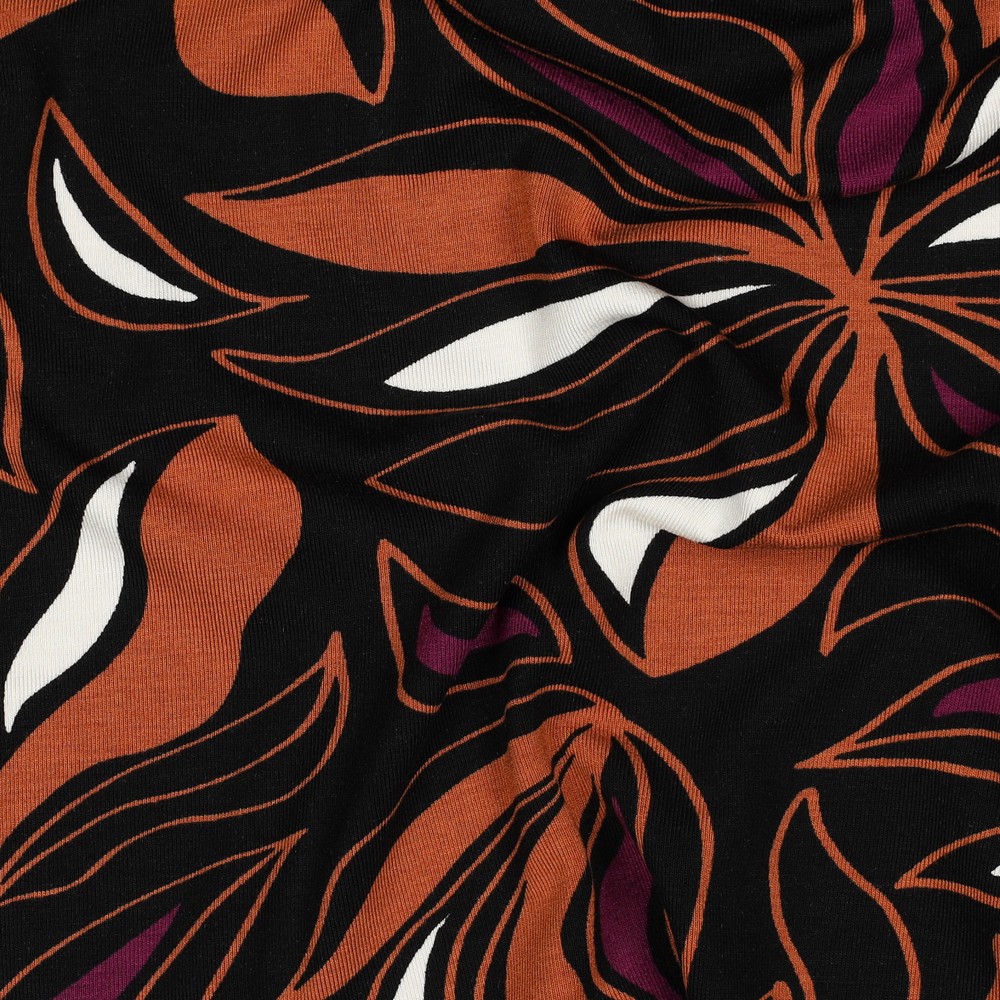 Denne viskosejersey med blomster på sort bund bringer farve og bevægelse ind i din garderobe.